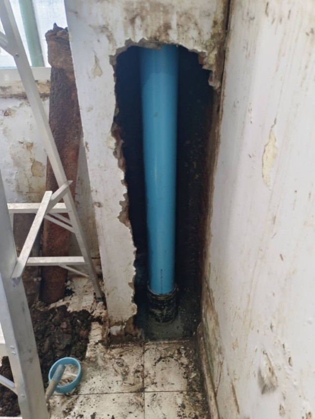- บริการซ่อมท่อประปาแตกท่อประปารั่วในผนังบ้าน ผนังคอนกรีต